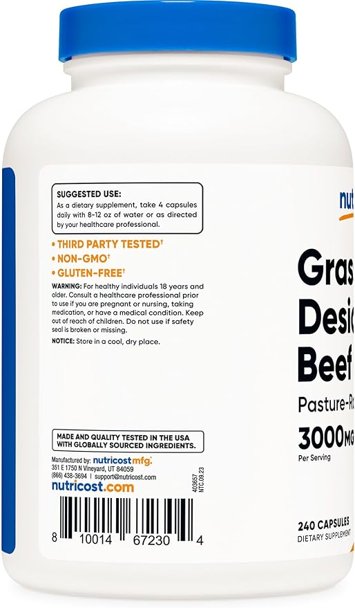 Nutricost Grass Fed Desiccated Beef Liver Capsules 3000mg (750mg Per Cap) - No Hormones, Non-GMO, Gluten Free, Pasture-Raised, Free Range Beef (240 Count (Pack of 1))