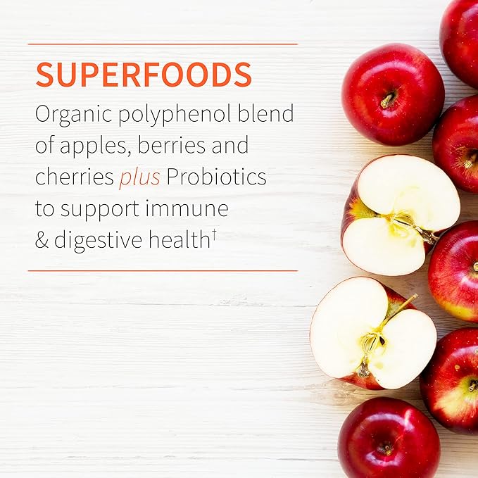 • THE IMMUNITY COMMUNITY: Our Organic Polyphenol Blend adds beneficial compounds with antioxidant properties from berries, cherries and apples for anti-inflammatory support along with Clinically Studied probiotic Bacillus subtilis DE111 for added benefits