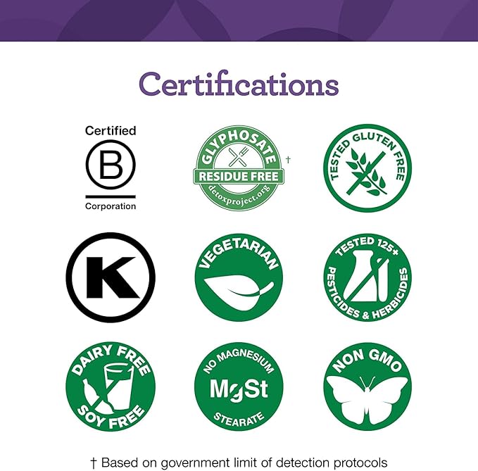 • Put To The Test: Vegetarian; Non-GMO; Tested for over 125 chemical substances; Made without 9 allergens: milk, eggs, peanuts, tree nuts, soy, wheat, fish, shellfish, and sesame; Gluten-Free