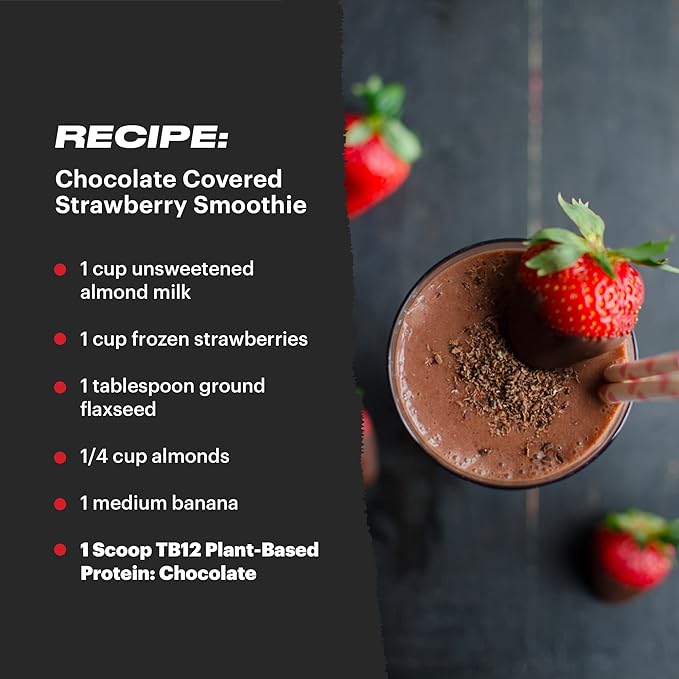 TB12 Plant Based Protein Powder by Tom Brady, 24g of Vegan Pea Protein, Low Sugar, Low Carb, Non-GMO, Meal Replacement, Keto Friendly, Paleo, Sugar Free, Chocolate Flavor (30 Servings/2.25lbs)