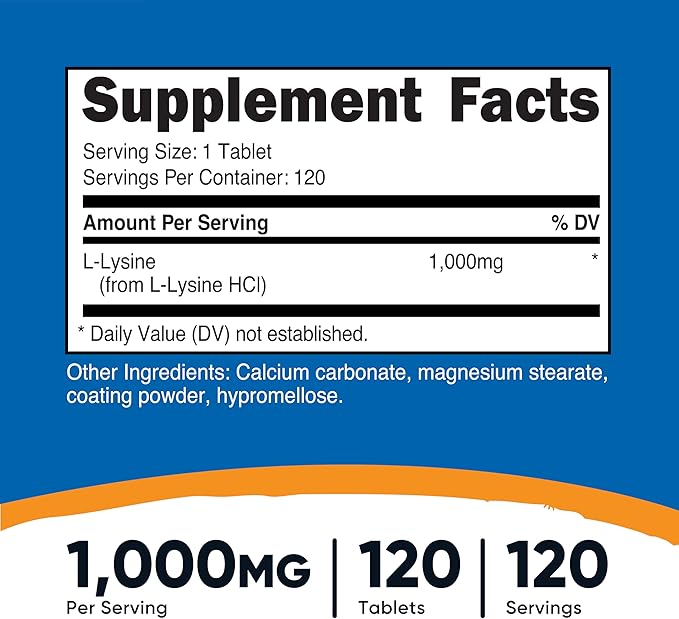 Nutricost L-Lysine 1000mg, 120 Tablets - Gluten Free, Non-GMO, and Vegetarian Friendly