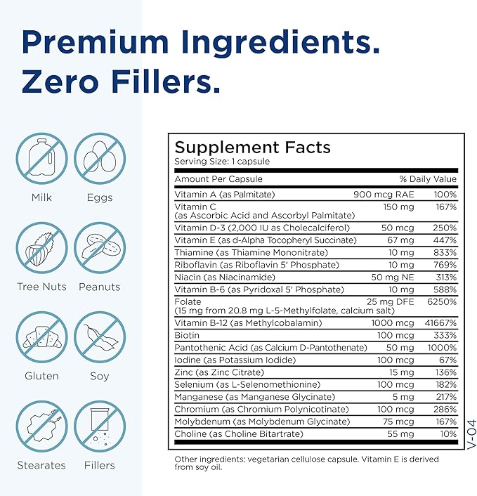 • Nutrients for Mood, Energy & Immune Support - Enhanced with immune-supporting vitamins for women and men like zinc, thiamine, vitamin C, and 2000 IU of vitamin D3. Promote healthy energy levels with a full array of B vitamins.
