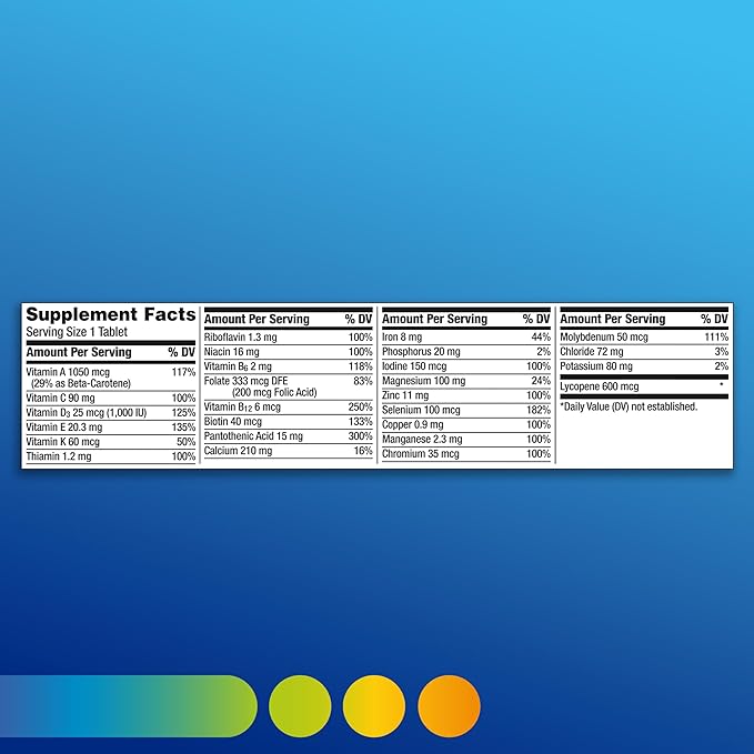 • These daily vitamins for men are specially formulated with B Vitamins to help support metabolism and Vitamins C, E and Beta-Carotene, and Zinc to provide immune support for men (1)