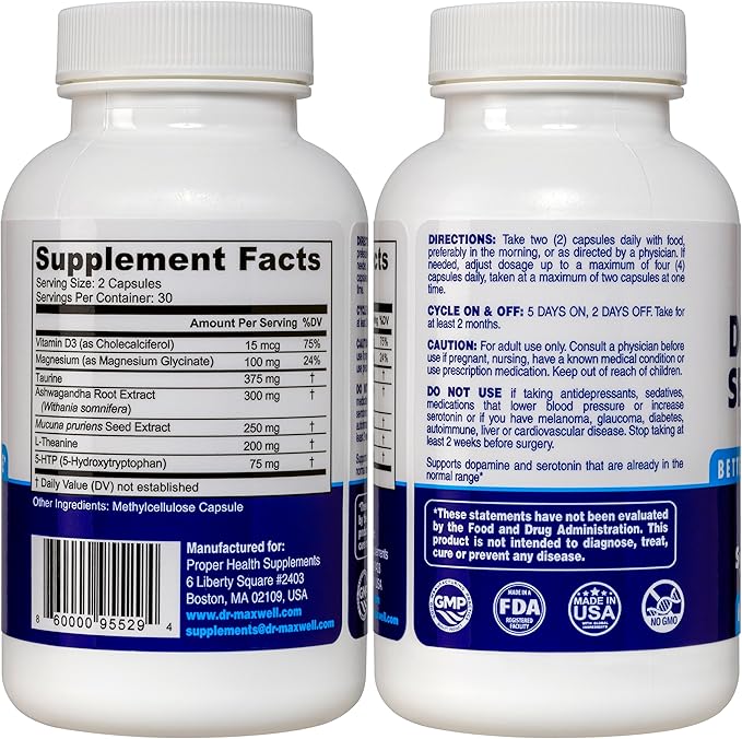 • Superior formula and value. If bought separately, dopamine & serotonin support supplements cost between 60 and 110$. Single ingredient supplements such as Mucuna Pruriens (dopaminSuperior formula and value. Dr Maxwell’s 4-in-1 formula provides 1) dopamine precursors, 2) serotonin precursors, 3) nutrients for mood support & relaxation and 4) focus & brain support. If bought separately, these would cost between 60 and 110$*