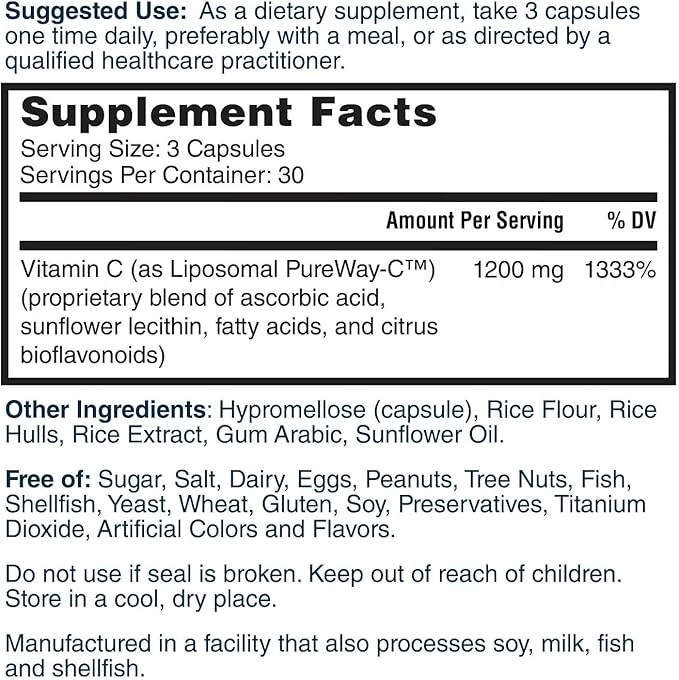 • BIOAVAILABLE VITAMIN C: This vitamin C supplement is made with PureWay-C a highly bioavailable form of vitamin C with enhanced absorption.* By surrounding vitamin C molecules within a lipid, the vitamin C is more easily taken up by the digestive tract*