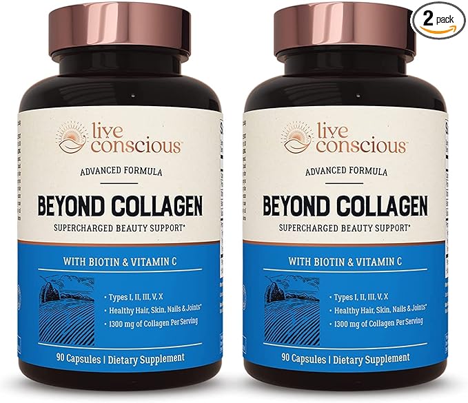 • HEALTHY SKIN, HAIR & NAIL SUPPORT: Live Conscious Beyond Collagen capsules offers 5 different types of collagen, plus biotin and vitamin C, in a convenient collagen supplement for women and men. By approaching healthy skin, hair and nail support from 5 angles, you can promote your body’s collagen levels, help you more efficiently use the collagen you have, and support the body’s natural collagen production.*