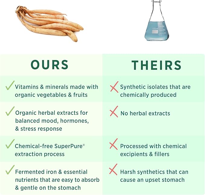 • Product Benefits : Nourish your body and mind with all your essential vitamins, core minerals, plus an energizing and balancing organic herbal blend that includes ashwagandha, shatavari, Peruvian maca, and more. Nourish your body and mind with all your essential vitamins, core minerals, plus an energizing and balancing organic herbal blend that includes ashwagandha, shatavari, Peruvi… See more