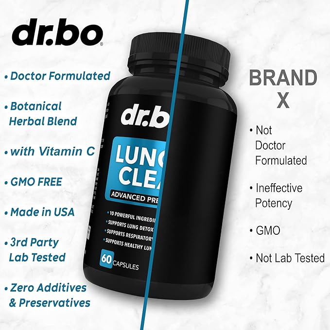• Lung Health Relief: Dr. Bo lung cleanse support supplement helps smokers cleanse out toxins and support herbal respiratory relief; quit smoking & clear mucus with our herbal detox for lungs