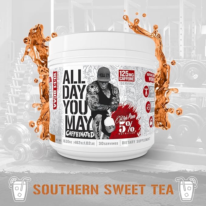 5% Nutrition Rich Piana AllDayYouMay Caffeinated BCAA Energy Powder | Premium Pre Workout Amino Energy & Electrolytes | Hydration, Endurance & Recovery | 16.3 oz, 30 Servings (Southern Sweet Tea)