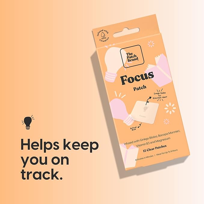 The Patch Brand Focus Patches | Supports Brain Function with B3 and Magnesium | All Natural Vitamins & Mineral Patch Plant Based and Cruelty Free Water Resistant Patches That Last All Day