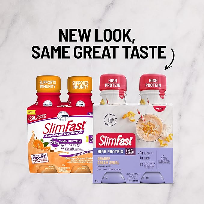 SlimFast Advanced Nutrition High Protein Meal Replacement Shake, Orange Cream Swirl, 20g of Ready to Drink Protein, 11 Fl. Oz Bottle, 4 Count (Pack of 3) (Packaging May Vary)