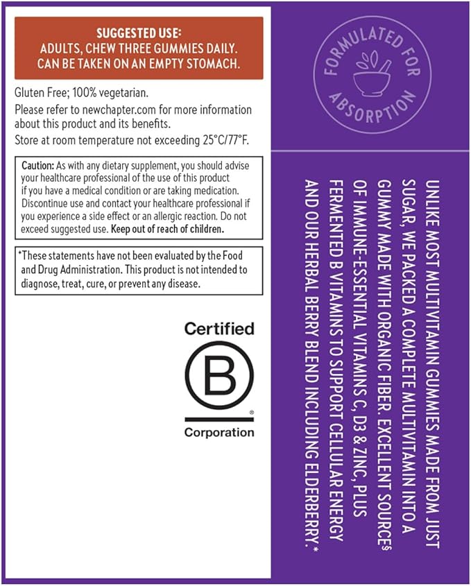 • Berry-Citrus Flavored, Non-GMO Project Verified, Made with Certified Organic Fiber+, 100% Vegetarian, Gluten Free, No Synthetic Fillers, No Animal Gelatin (added to some gummy vitamins), Free from 8 Major Food Allergens