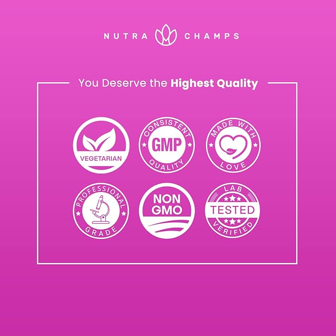 • Highest Quality Manufacturing - All NutraChamps product are manufactured in cGMP-Certified state-of-the-art facilities, and lab tested to guarantee that you receive the purest, safest and highest quality products on the market.