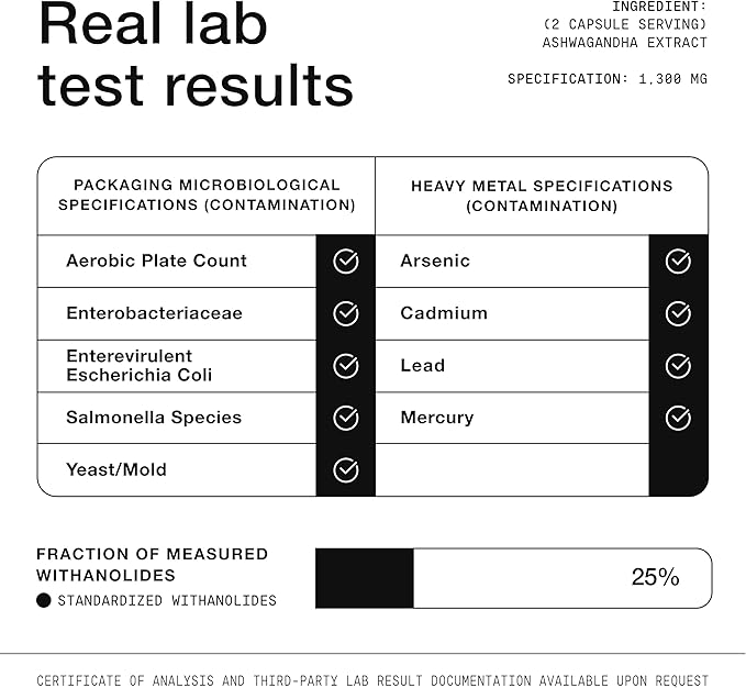 • Third-Party Tested 25% Withanolides - Our Ashwagandha extract contains an unparalleled 25% withanolides, the main compound that gives ashwagandha its stress-relieving bioactive properties. Most other ashwagandha gummies and products consist of non-concentrated ashwagandha powder, and contain less than 2.5%.