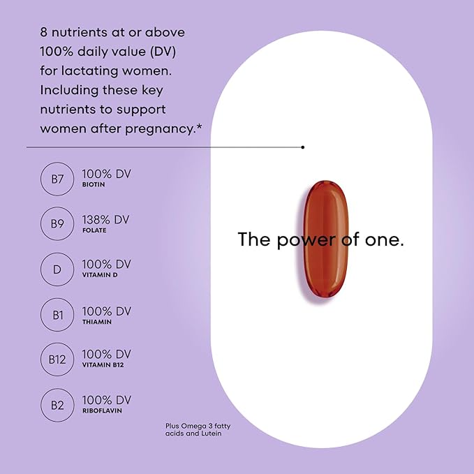 ONE A DAY Postnatal Complete Multivitamin for Post-Pregnancy with Folic Acid and Omega-3 DHA, 60 Count (Packaging May Vary)