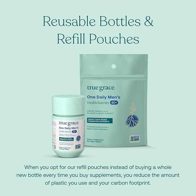 • SUSTAINABLE PACKAGING – Our supplements are delivered in custom-made, reusable bottles made from recycled plastics. We also offer earth-friendly refill pouches made from plant-based materials. Using pouches to refill True Grace bottles minimizes our carbon footprint—and yours. Plus, every time you purchase a bottle or pouch of True Grace products, plastic is pulled out of the ocean through our partnership with ReSea Project.