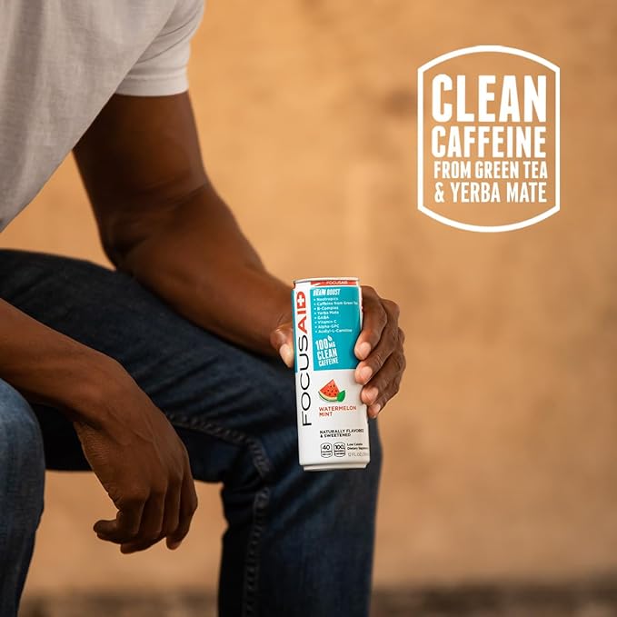FOCUSAID Energy Drink, Brain Boost, Juicy Watermelon, Nootropics, Alpha-GPC, GABA, B-Complex, 100mg Caffeine, Yerba Mate, Green Tea, 100% Clean, No Artificial Sweeteners, 12 Oz(Pack of 12)