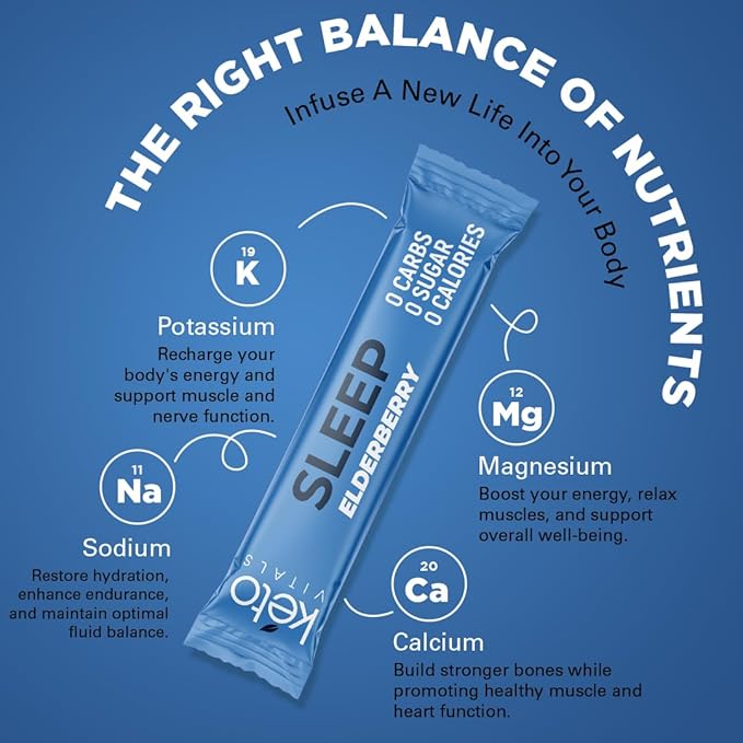 • Wellness and Slumber Support - To help rehydrate and achieve a better night's sleep, get Keto Vitals’ keto-friendly electrolyte sleep powder packets. Our natural electrolyte powder is packed with antioxidants, vitamins, and amino acids for optimal rest and rehydration.