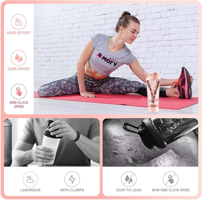 • Lockable Leak-Proof Design: The one-click lockable feature empowers you to lock or open the electric protein shaker bottle with a single hand, eliminating worries about leaks and spills. Your gym bag and belongings stay dry even when you're on the move