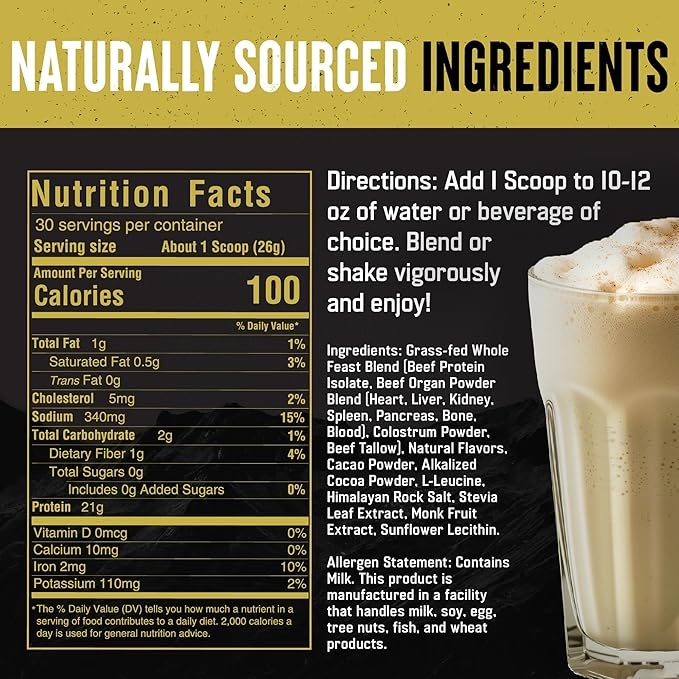 • WHOLE FEAST because the baddest native warriors to ever walk the earth, The Cree, ate raw bison liver to gain the power of the bison. Animal-based, 100% natural, Sweden-sourced, grass-fed beef protein isolate (anthesis of vegan friendly) packed with all 8 essential amino acids, all 3 BCAAs and loads of naturally occurring collagen for joint and tendon health… Whole Feast is the ultimate protein upgrade that’s low-carb and keto-friendly to easily build muscle and unearth the warrior-beast within