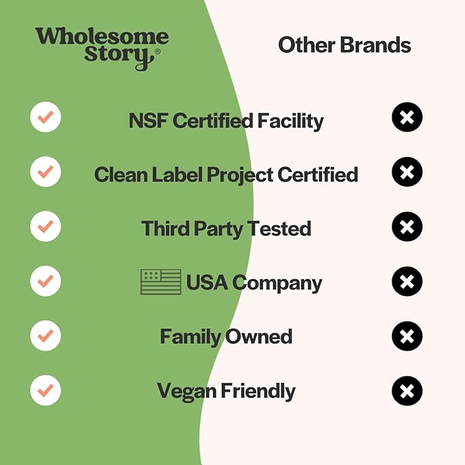 • Our Wholesome Promise: We are family-owned & proud to have our products 3P tested & certified by the Clean Label Project. We understand that each body and journey is unique. If our supplements don't work for you, let us know & we will make it right