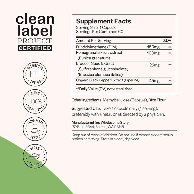 • 30 Day Supply & Clean Label Project Certified: Our DIM is vegan friendly, and has been tested for heavy metals, plasticizers, and agro chemicals. Clean matters!