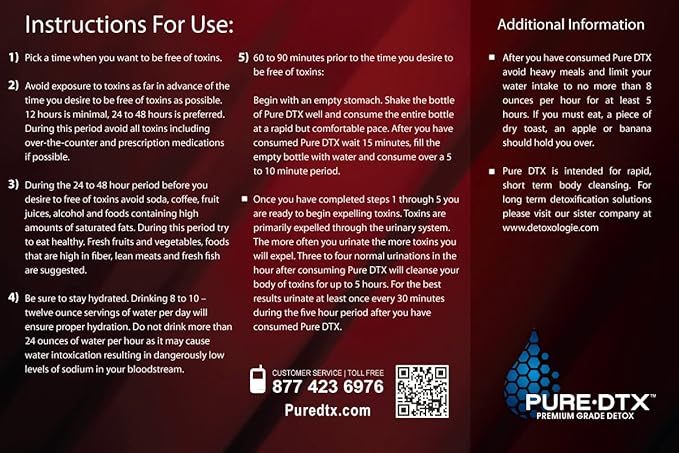 • FORMULATED: A powerful proprietary herbal blend of 12 herbal extracts with 19 essential vitamins and minerals to support a rapid, same day, total body detoxification process to remove toxins from the urinary tract, liver, kidneys, and blood. Your system will be free of toxins for 6 to 8 hours.