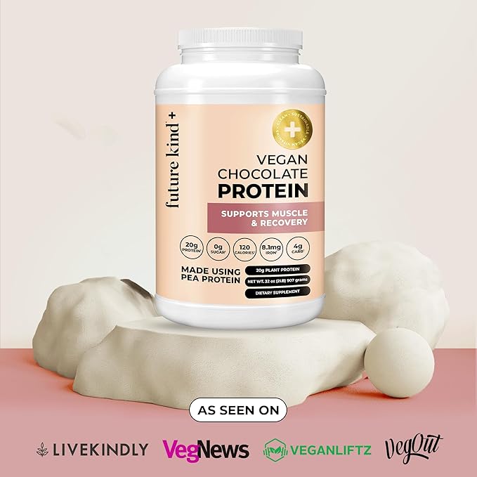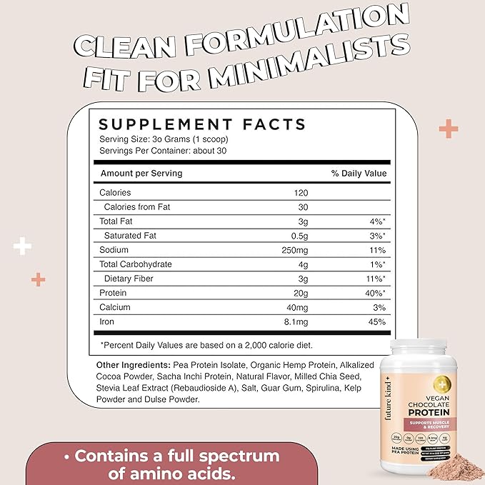 Future Kind Vegan Protein Powder Chocolate (34srv) - Whey Free Protein Powder for Men and Women Pea Plant Protein for Lean Muscle - Sugar-Free, Soy-Free Non Dairy Protein Powder w/Iron and Fiber
