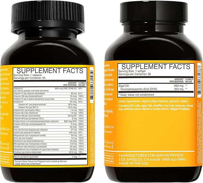 HUM Womb Service Prenatal & Postnatal Vitamins Combo Pack - OBGYN Formulated Vegan Prenatal Vitamins - Clean Daily Pre-to-Post Pregnancy Support with Choline