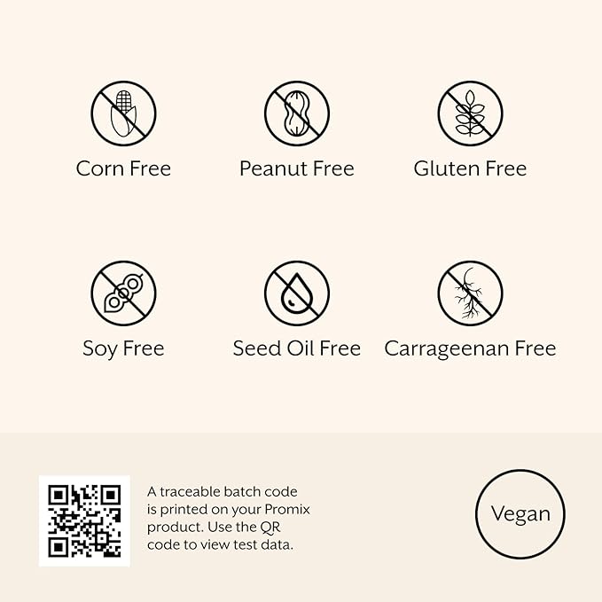 • Whole Ingredients, Great Taste: At Promix, we partner directly with farms and producers to ensure our products are made with delicious, high-quality ingredients like pea protein, organic coconut oil, and organic vanilla extractives.