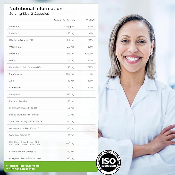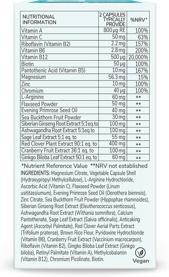 • SUPPORTS PHYSICAL & MENTAL WELLBEING IN 9 WAYS - These menopause capsules support women's health including Hormone Regulation, Energy, Psychological Function, Cognitive Function, Skin, Hair, & Nails, Bones, and ImmunityϮ