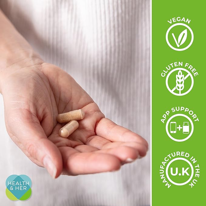 • FREE DIGITAL APP SUPPORT - the Health & Her app helps you track, learn and build positive lifestyle habits, with access to guided exercises & tools, expert advice & timely reminders to take your supplements. Search in the app store for 'Health & Her'. PACKAGING MAY VARY