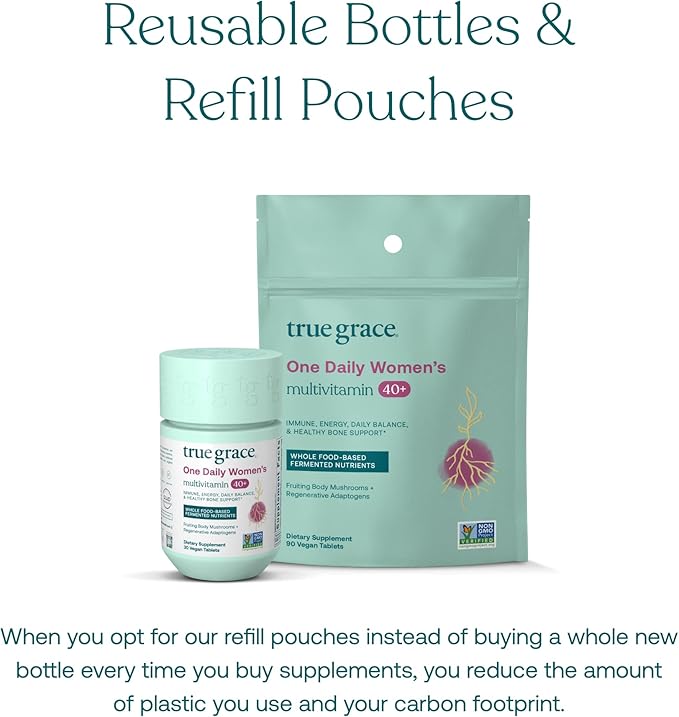 • REUSABLE, RECYCLED PACKAGING - Our commitment to planetary health is real—right down to the recycled packaging we use. Plus, every time you purchase a bottle or pouch of True Grace products, plastic is pulled out of the ocean. Our supplements are delivered in custom-made, reusable bottles made from recycled plastics; we offer refill pouches of your favorite True Grace products made of carbon-neutral packaging from sustainably sourced sugarcane.