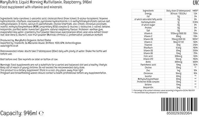 Multivitamin Multimineral for Women Men & Kids by MaryRuth's | No Added Sugar | Vegan Liquid Vitamins for Adults & Kids | Mens, Womens Multivitamin | Energy & Beauty Booster | Non-GMO | 32 Fl Oz