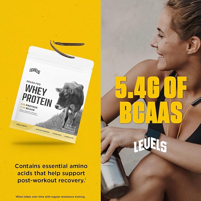 • LEVELS WHEY PROTEIN: Each scoop of Levels Vanilla Bean Whey contains 24g Protein, 5.4g BCAAs (branched-chain amino acids), and no added sugars. Trusted by athletes, fitness enthusiasts and daily grinders everywhere, our whey is crafted for everyone’s lifestyle.