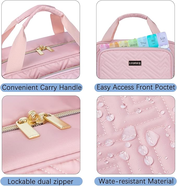 • Durable & Safety: Water resistant,durable fabric and well-padded design to keep full bag's shape and provide great protection. Sturdy stitching and heavy duty material and it can stand up many items. Equipped with a double zipper which can be locked, you can choose the lock you like to lock it, ensuring your medication is safe.