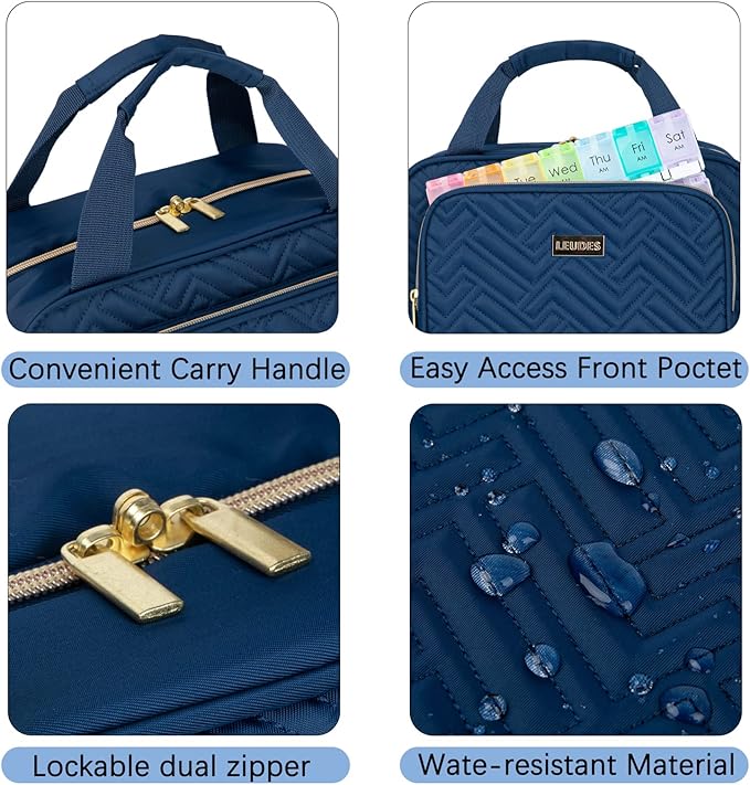 • Durable & Safety: Water resistant,durable fabric and well-padded design to keep full bag's shape and provide great protection. Sturdy stitching and heavy duty material and it can stand up many items. Equipped with a double zipper which can be locked, you can choose the lock you like to lock it, ensuring your medication is safe.