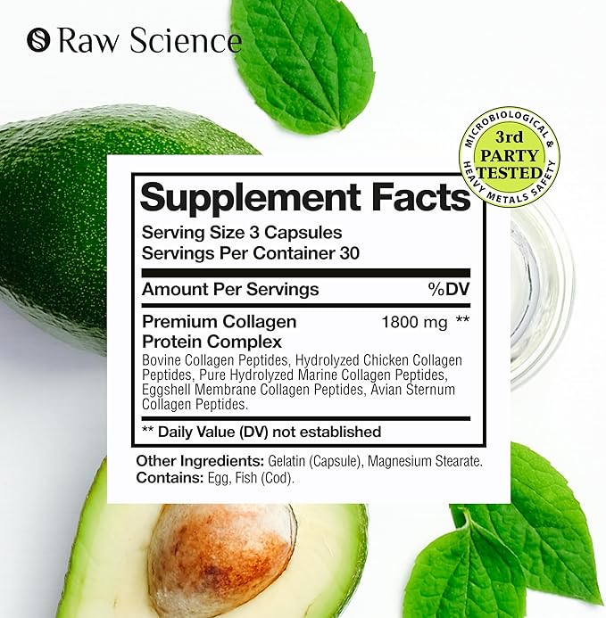 • 【ENHANCED COLLAGEN SUPPORT】: Experience the potent benefits of hydrolyzed collagen peptides with Raw Science multi collagen peptides capsules. Formulated with collagen types I, II, III, V, and X, these capsules provide comprehensive support for both men and women, helping with skin, hair, and nails.