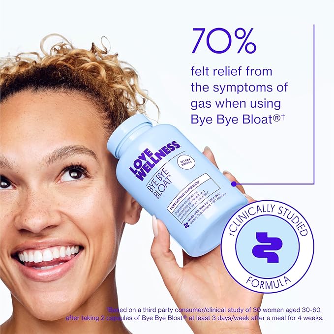 • FAST & EFFECTIVE BLOATING RELIEF: Kiss digestive woes goodbye with our safe, effective blend designed to help provide bloating and gas relief and promote healthy digestion.* Digestive enzymes and herbs in Love Wellness Bye Bye Bloat support digestive health and normalized water retention.* Serving size 2 capsules, 90 servings per bottle.