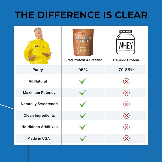B.rad Grass-Fed Whey Protein Isolate Powder with Creatine | All-Natural, Ultra-Pure, Clean Ingredients | 100% USA-Sourced Superfuel | 2 Pounds | Vanilla Bean