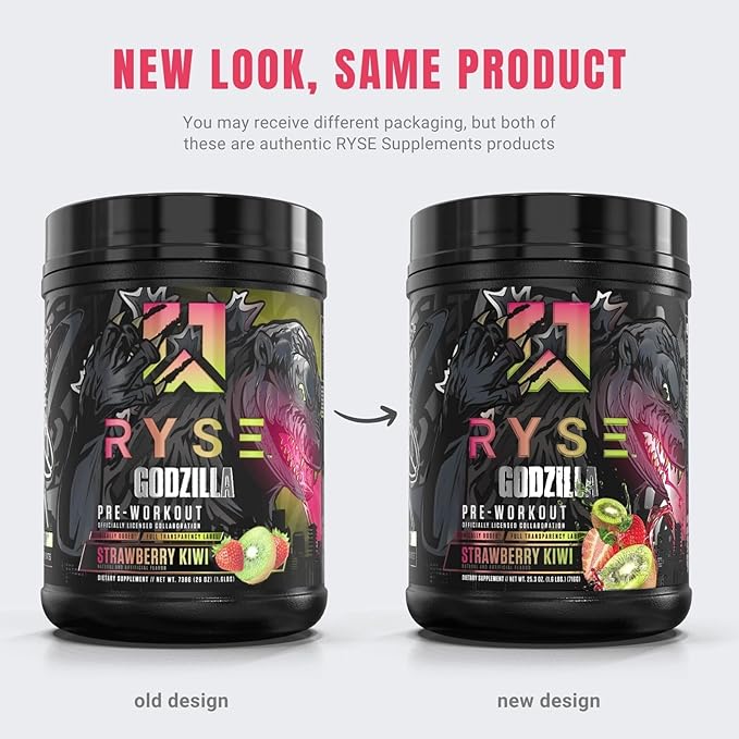 Ryse Noel Deyzel x Godzilla Pre Workout | Intense Pumps, Energy, & Focus | Citrulline & Beta Alanine | 400mg Total Caffeine | 40 Servings (Strawberry Kiwi)