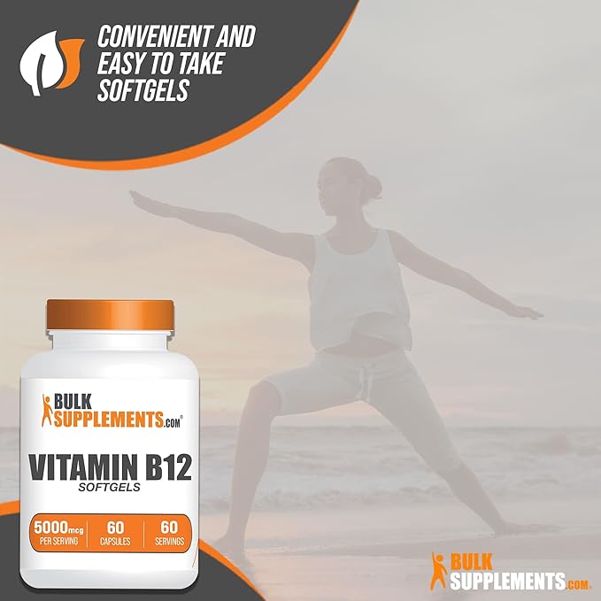 BulkSupplements.com Vitamin B12 1000 mcg Softgels - Cyanocobalamin, Vitamin B Supplements, B12 Pills - Gluten Free, 1 Vitamin B12 Softgel per Serving, 60-Day Supply, 60 Softgels