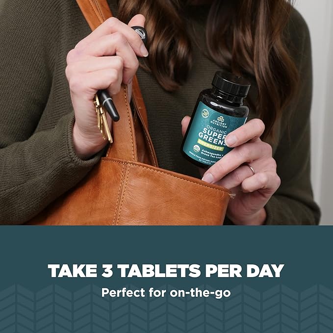 Ancient Nutrition Supergreens Energizer Tablets, Organic Superfood Tablets with Caffeine, Made from Real Fruits, Vegetables and Herbs, for Digestive and Energy Support, 90 Count