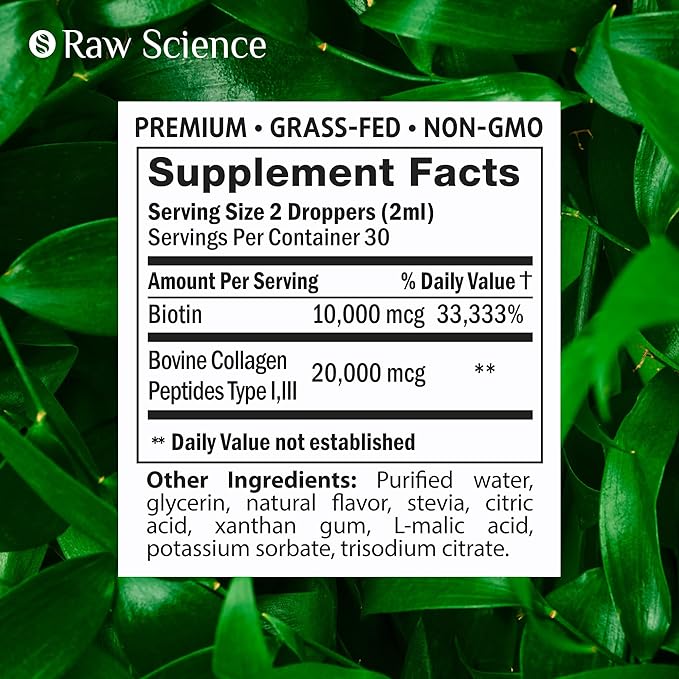• 【COLLAGEN & BIOTIN LIQUID】 - Raw Science's optimized formula helps to make hair grow faster and longer. A perfect blend of hair vitamins for faster hair growth, infused with biotin 10000mcg, just a few drops a day promotes fast hair growth.