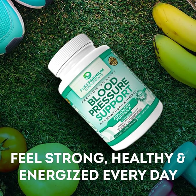 PurePremium Blood Pressure Support with Hawthorn Berry, Hibiscus - Nitric Oxide with Vitamin B6 - Garlic Supplements for Normal Nitric Oxide Supplement - 180 Caps
