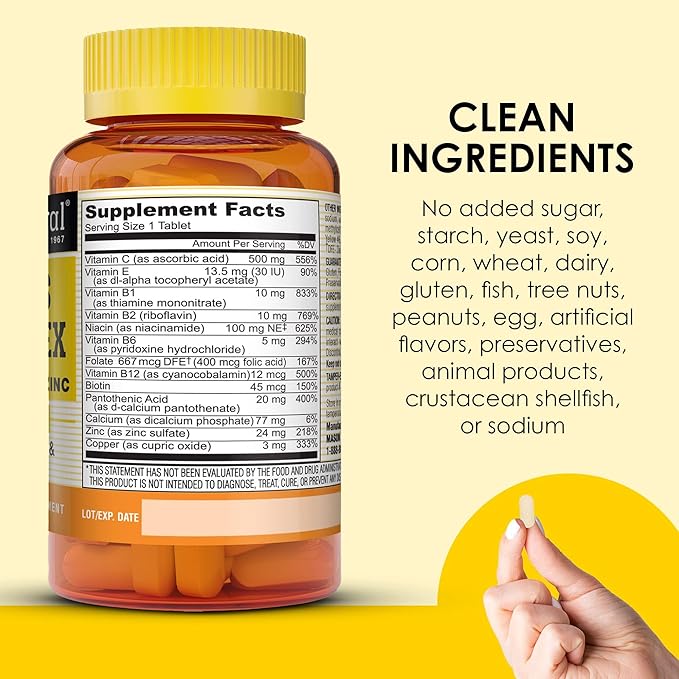 • B-COMPLEX: An easy-to-swallow tablet for adults 18+ to take 1 daily, preferably with food, as a dietary supplement