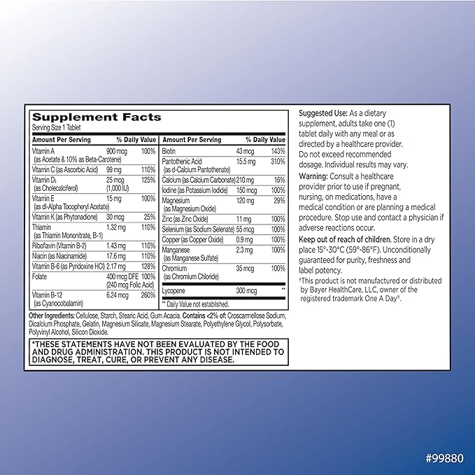 • One Daily Men's Tablets are suggested as a dietery supplement in support of Heart Health, Healthy Blood Pressure, Immune System Health, Muscle Function, and Energy Production.