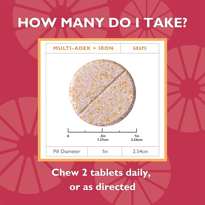 Celebrate Vitamins Multi ADEK Chewables, 60mg Iron - Daily Bariatric Multivitamin, Vitamins A, D, E, K & B12 for Duodenal Switch Surgery Patients - Grape (60 Tablets)