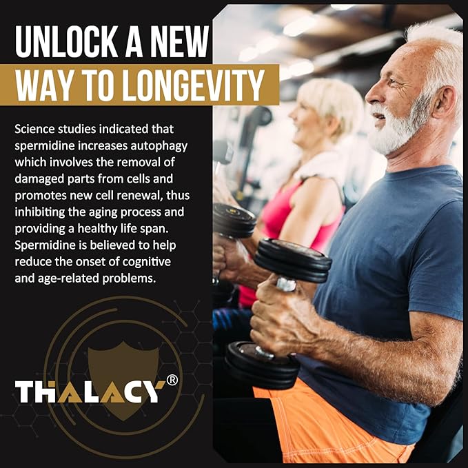 • Non-Synthetic Ingredients : Thalacy cares more about your overall wellness, and the solvent-less, all-natural extraction method. Without any synthetic spermidine form in our product. Each serving contains 1300 mg of a highly concentrated form of fermented wheat germ extract (Contains 13 mg of Spermidine), zinc, and vitamin B1