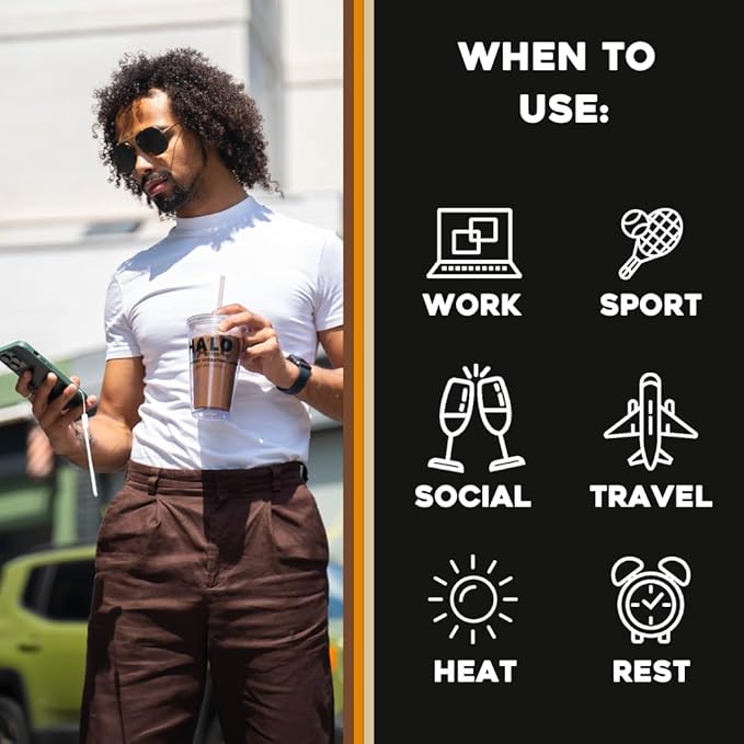 • ON THE GO - HALO’s electrolyte energy powder is perfect for on-the-go hydration. Avoid chronic dehydration from daily activities such as working out, sports, cycling, late nights, work, travel, or to boost your afternoon slump. Whether you are an athlete or a wellness enthusiast, these hydration gym powdered packets are for you.